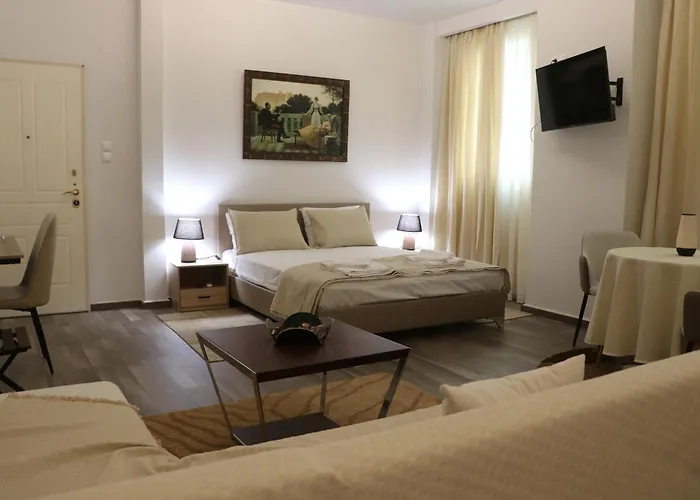 Ionos Dragoumi busstoppested ligger 5 minutters gang fra indkvarteringen.
